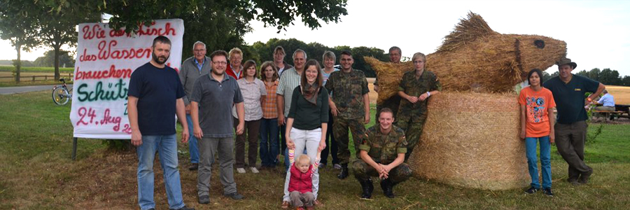 Am vergangenen Donnerstag, den 8. August 2013 wurde auf dem "Goldenen Dreieck" die Strohfigur für das diesjährige Schützenfest aufgestellt. Ein Fisch ist in diesem Jahr Symbol-Figur für dieses Event und das Motto lautet "Wie der Fisch das Wasser - brauchen wir das Schützenfest". In diesem Jahr waren nicht nur Anwohner aus DuRoIbs, sondern auch eine Abordnung Soldaten aus der Patenkompanie ...
